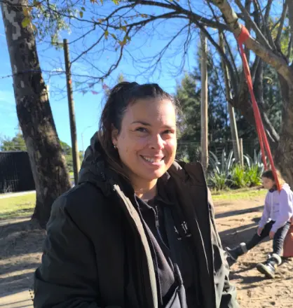 Nathy es una pieza fundamental en el equipo, llevamos ya años caminando juntos. Es una figura clave para los niños, que encuentran en ella una presencia fuerte, alegre y dispuesta a acompañar. Con formación en educación y profesorado de inglés, y un entusiasmo contagioso, crea vínculos genuinos y sostiene procesos con cálidez.